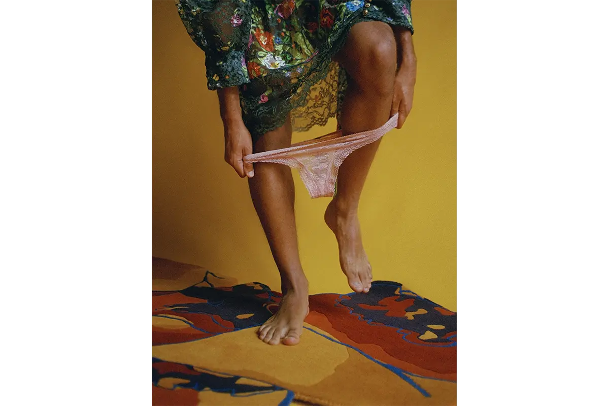 Pre-production is something I’m not fond of; thinking on what and who am I going to shoot and how I’d like those elements to look. In this specific case, I’m shooting clothes worn by some of my very favorite models based in Madrid, no more no less. The models I shoot are very often people who interest me beyond their appearance; usually I’ve shot them before, there’s an ongoing working relationship between us. In this case I also wanted to add Leo Rydell Jost’s carpets – all unique art pieces – against a yellow background to create a simple yet somewhat unexpected set. Lastly, the boys are wearing clothes that were supposed to be designed for women… but in these days, is there anybody out there still really making a difference about who wears what? Let’s just have fun.