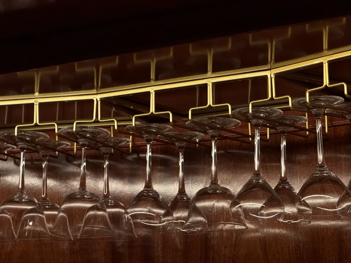 The entrance opens directly onto the bar, the structural and symbolic center of the restaurant. The aesthetic draws from nautical references, with wood surfaces, clean lines, and controlled lighting reminiscent of a yacht interior. The design is calibrated and restrained, without decorative excess. The atmosphere recalls a French bistro, with closely spaced tables encouraging conversation and a mood that is lively yet contained, suited both to couples and small groups.