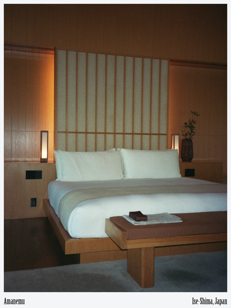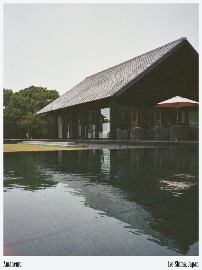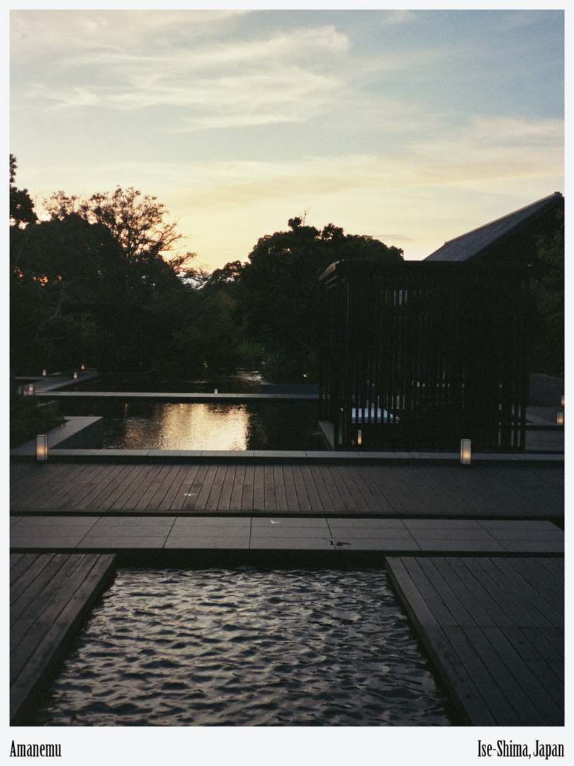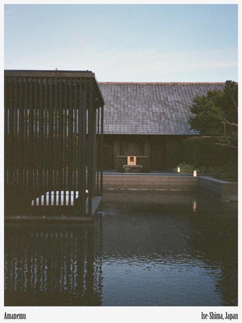 Opened in 2016 and designed by Kerry Hill Architects, Amanemu continues the practice of the studio’s founder, known for translating regional craft and climate logic into contemporary minimalism. The project recalls the traditional minka houses of rural Japan — low, elongated, rooted in the earth — and the architecture of ryokan, the thermal inns where life unfolds around water.