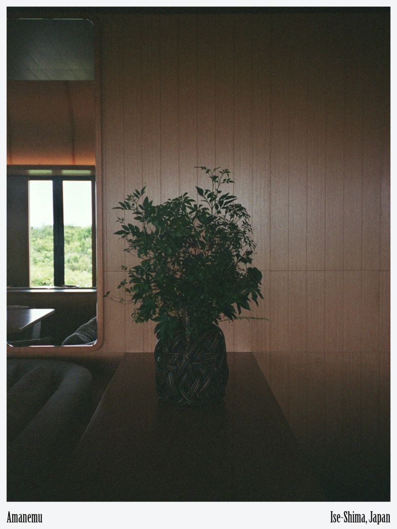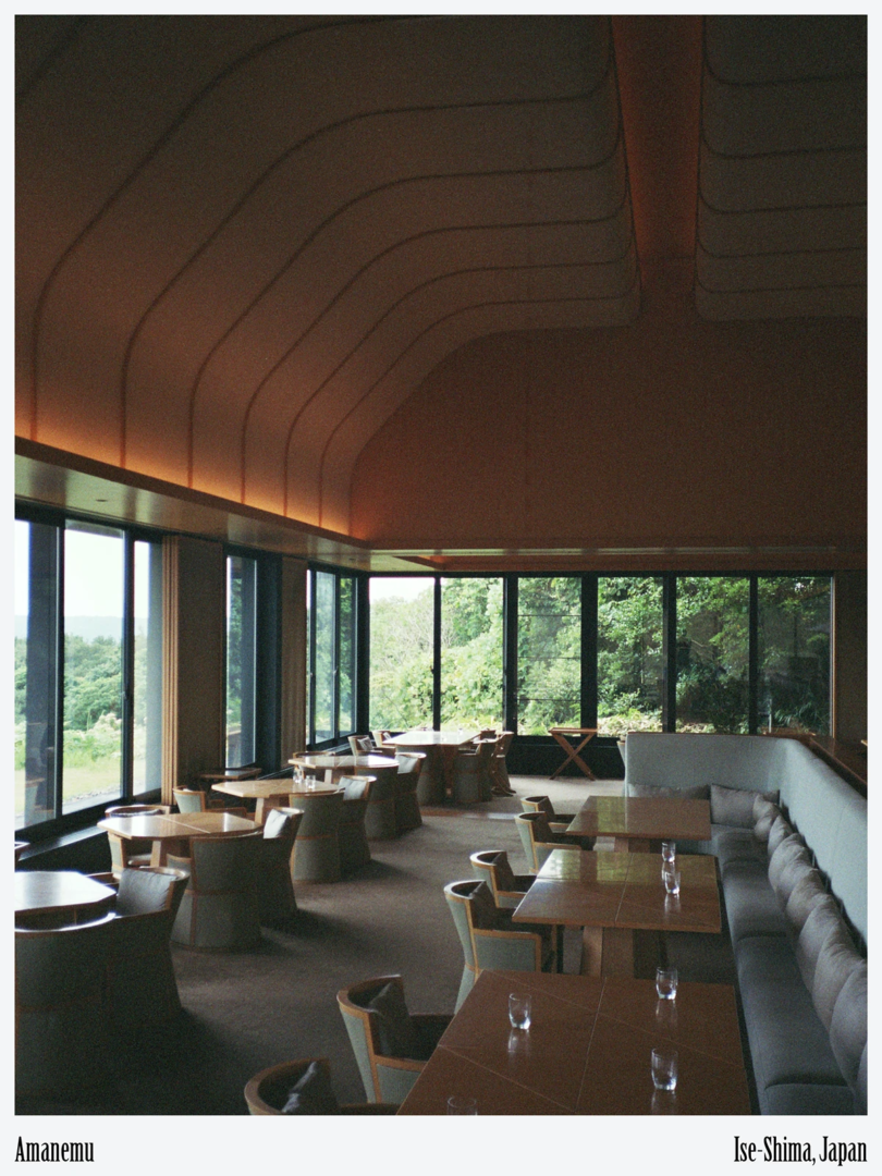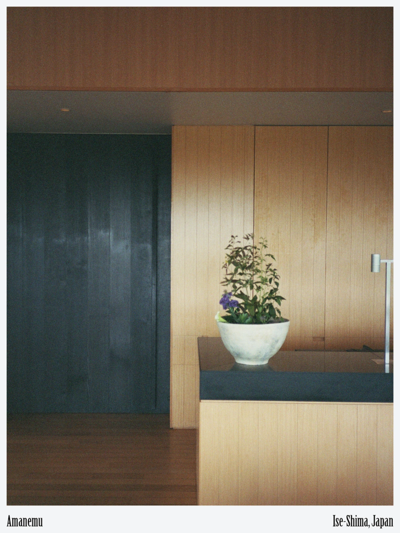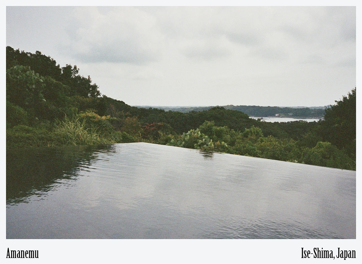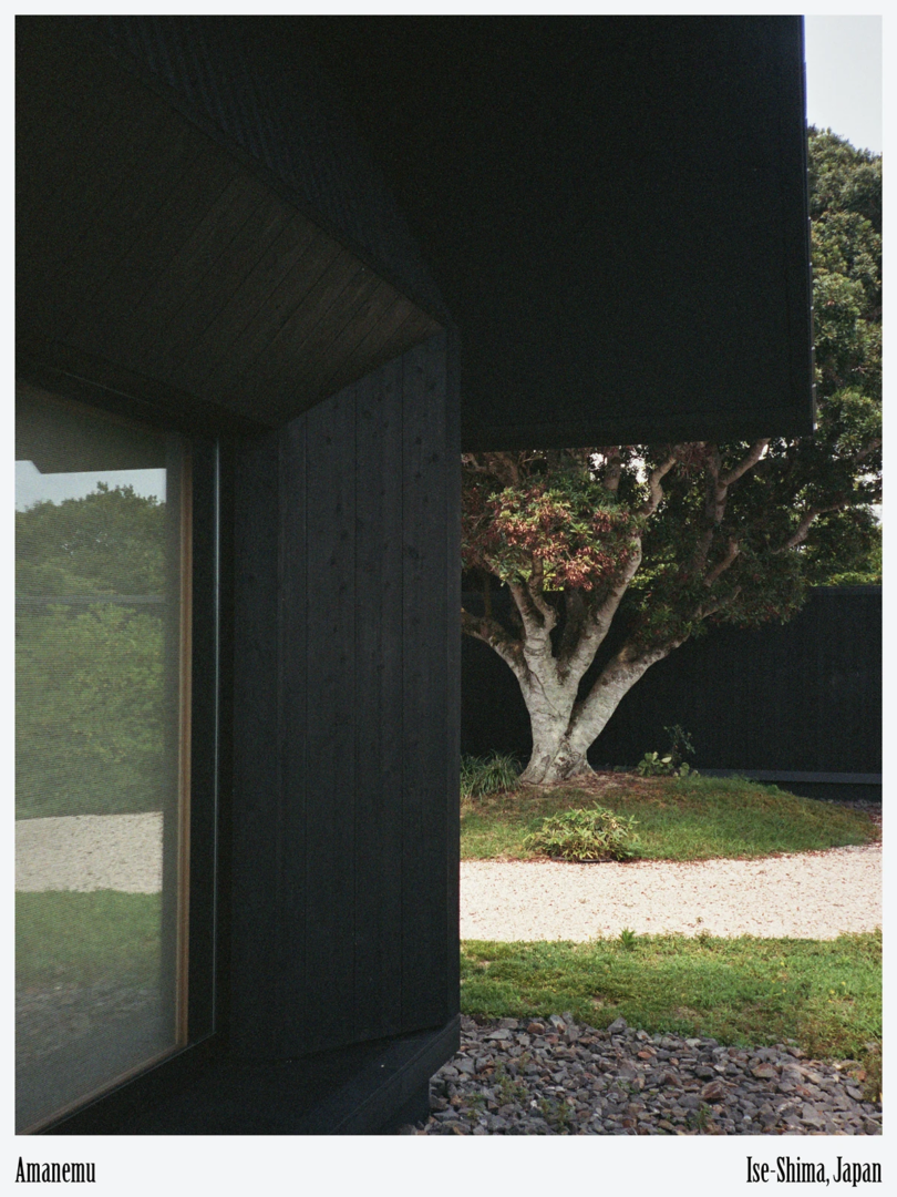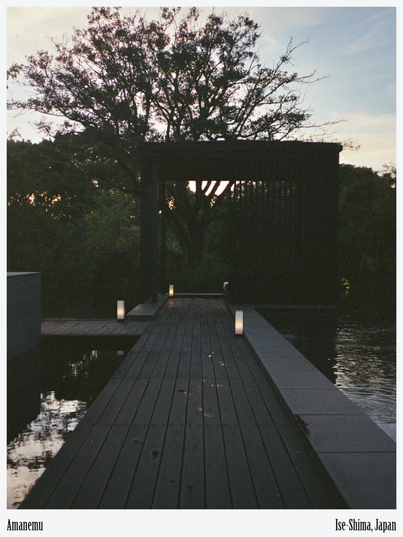 Between the wooded ridges of Shima Peninsula and the still surface of Ago Bay, Amanemu rises from the ground as if drawn from the same mineral layer. The bay, known for its floating rafts used in oyster and pearl cultivation, defines the rhythm of this coastal region — a geography shaped by salt, mist, and silence.