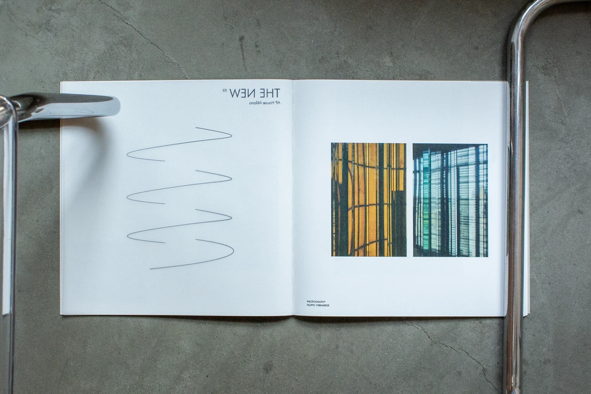 La progettazione degli interni della AP House Milano è stata affidata a Piero Lissoni e al suo studio, Lissoni & Partners. Gli spazi si estendono su diversi livelli del Garage Traversi, dal piano terra al nono piano, e la scala interna è uno degli elementi chiave del progetto. Lissoni, in un’intervista contenuta nel libro, descrive la scala come “un punto di transizione tra il passato dell’edificio e il suo nuovo utilizzo”. Realizzata in acciaio con rivestimenti in onice, la scala collega i vari piani attraverso una spirale che richiama l’idea di un flusso continuo, invitando il visitatore a esplorare l’edificio in modo dinamico.