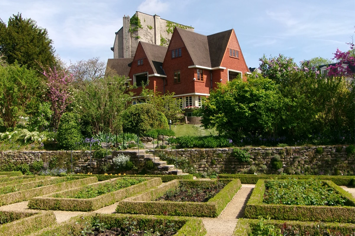 Equally important is the villa’s garden, which evolved alongside the house. The original layout by Jules Buyssens featured sharp geometries and structured paths hallmarks of early 20th-century Belgian landscape design. Later additions by René Pechère, including the “Garden of the Heart” and the “Labyrinth of Life,” introduced a layer of symbolic storytelling that complemented the home’s interior aesthetic.