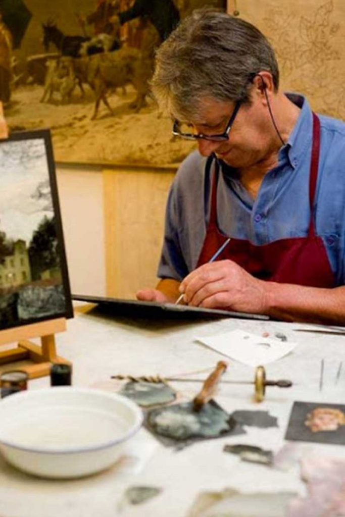 Bruno Lastrucci is a craftsman and visionary art artist engaged in an ancient craft that carries forward with traditional tools and techniques and with extreme passion and dedication. His art focuses mainly on portrait stone; celebrated his work of Joseph Lancaster on permanent display at Lizzadro Lapidary Art Museum, and other important works of art placed in prestigious private collections. This passion and care was transmitted to son Iacopo, whose beginnings are apprenticed to Santa’s workshop, where he learns, size and experience one of the most fascinating and precious art of traditional landscape that lead him to produce works in committed Fiorentino of extreme quality and refinement.