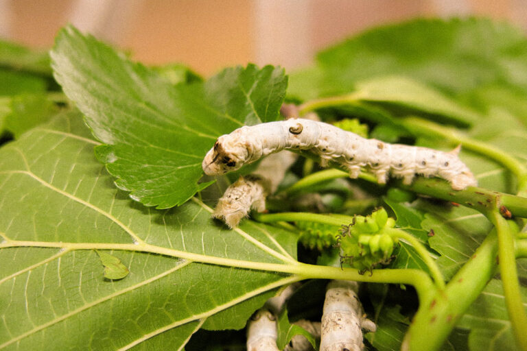 La seta emblema della circolarità: ogni scarto riutilizzato – fibroina per la seta, sericina per la cosmesi, la larva cibo per animali
