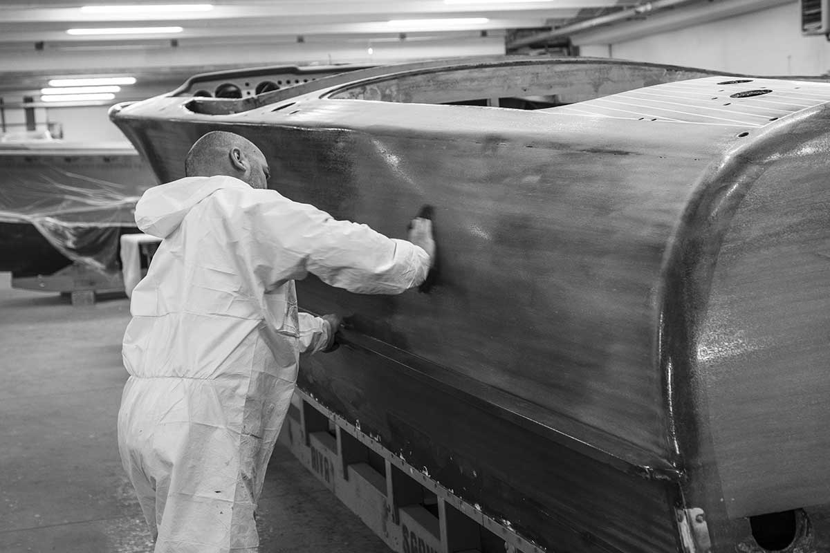 As with any restoration, it’s important to restore original parts where possible or replace parts with original parts, even with mechanical parts. You can’t replace a formica dashboard with a wooden one, even if the latter is ‘nicer’. A restoration is carried out by a shipwright, a mechanic, an electrician and a painter from the shipyard. There are two external professionals: an upholsterer («it’s not enough to have a white and turquoise seat: the stitching makes the difference») and a chromer, the son of a chromer from the Riva shipyards. The laminated hulls are purchased from two historic companies that used to work for Riva. No restoration is ever the same; each boat is its own chapter. «The timbers today show their years and many parts need to be changed. The most important is the hull: some clients would like to redo just the upholstery but they have a rotten hull. With the upholstery worn out, the boat will be the same, with the rotten hull you go down». Every year we restore about ten boats, working on three or four at the same time. The refitting of fiberglass boats is an- other matter, as they are done faster.