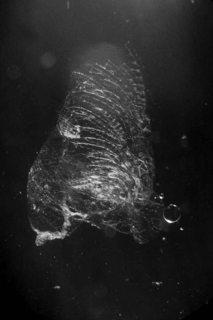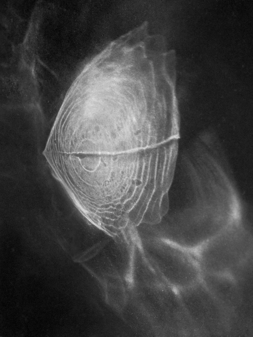La microfotografia diventa così parte integrante del progetto: l’artista include immagini ecografiche e fotografie al microscopio dello zooplancton, organismi marini primitivi che incarnano sia l’origine sia la perpetuazione della vita. Tutto si dispiega in un’atmosfera sospesa, come in un continuum tra stati visibili e invisibili.