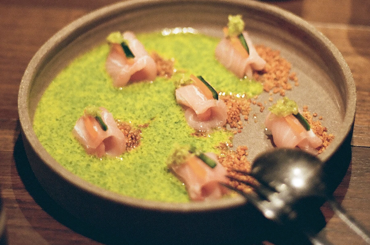 The kitchen operates as a workshop where technique structures every stage of the meal. Japanese precision, Peruvian intensity, and Italian respect for raw ingredients coexist without conflict, forming a vocabulary of method rather than signature. Cooking is guided by tension: raw meets cooked, fire meets cold, and instinct meets control. The grill functions as a precise instrument, smoke is applied in measured doses, and fermentation adds complexity with subtlety. Each dish unfolds in rhythm with the kitchen and the service sequence, creating a cohesive flow from start to finish. Complementing this, the bar, led by Matias Sarli of the 80-20ml drinks lab, follows the same disciplined logic. Cocktails are crafted with niche spirits and infusions of plants and flowers, echoing the layers and pacing of the food. Drinks offer controlled progression, balancing technique and sensory engagement, and reinforcing the kitchen’s methodology. Together, the food and drinks create a unified system where timing, layering, and precision define the experience.