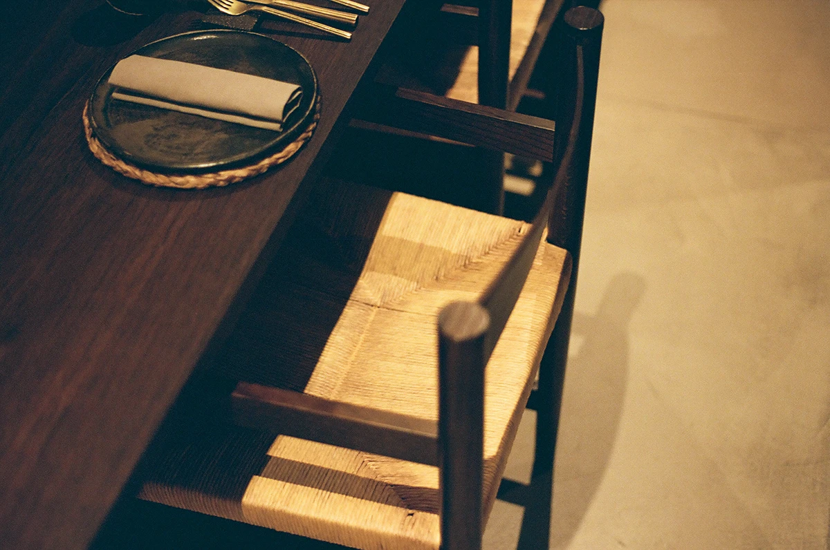 The dining room avoids direct geographic reference, even while acknowledging subtle influences from Latin American, Japanese, and Italian aesthetics. The space functions as neutral territory, allowing multiple cultural and culinary references to coexist without hierarchy. Material choices, circulation, and furniture selection reinforce the visibility of technique while supporting the natural rhythm of the meal. Minimalism is applied structurally rather than stylistically, producing a sense of focus without austerity. In this environment, diners are encouraged to engage with the act of eating itself, observing the precision of preparation, the unfolding of dishes, and the pacing dictated by both fire and fermentation. The interior’s quiet discipline mirrors the philosophy in the kitchen: clarity, restraint, and an emphasis on method over decoration.