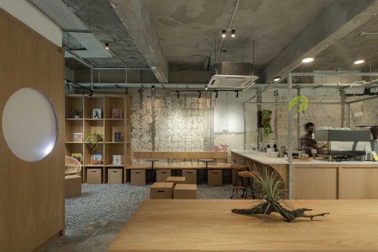 Concrete floors and wooden furniture blend in with the surrounding to avoid overpowering the items on display. Items carried are products that are based across East and West Malaysia