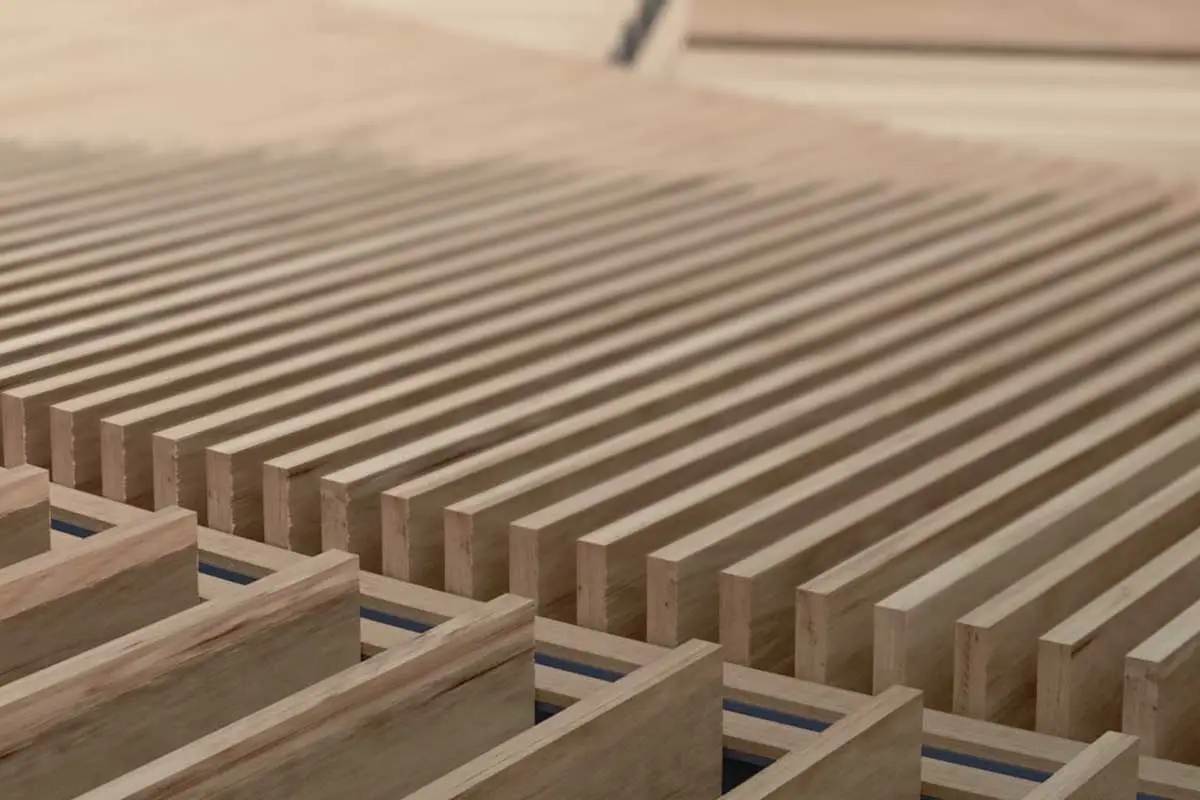 In this way, the original structure can still be seen in full. In order for this to happen, the new ground level will be made of high-tech moving panels, made of a mixture of carbon fibers and tremanto, like the supporting structure, covered with Accoya wood. These plates or foils will be rotable and turnable, will be remotely controlled and move several times per day to reveal the underground corridors and walls. The moving foils will have different lengths and width according to the length and width of the corresponding underlying spaces.