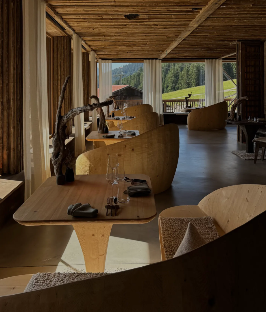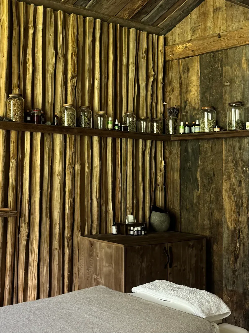 The spa follows the same line of thinking. Instead of elaborate hydraulic theater, its layout and facilities revolve around the availability and quality of this spring. The atmosphere is calm, elemental: wood, warm stone, water moving between hot and cold. It reads less like a theme park and more like a small, precise extension of the mountain’s own hydrology.
