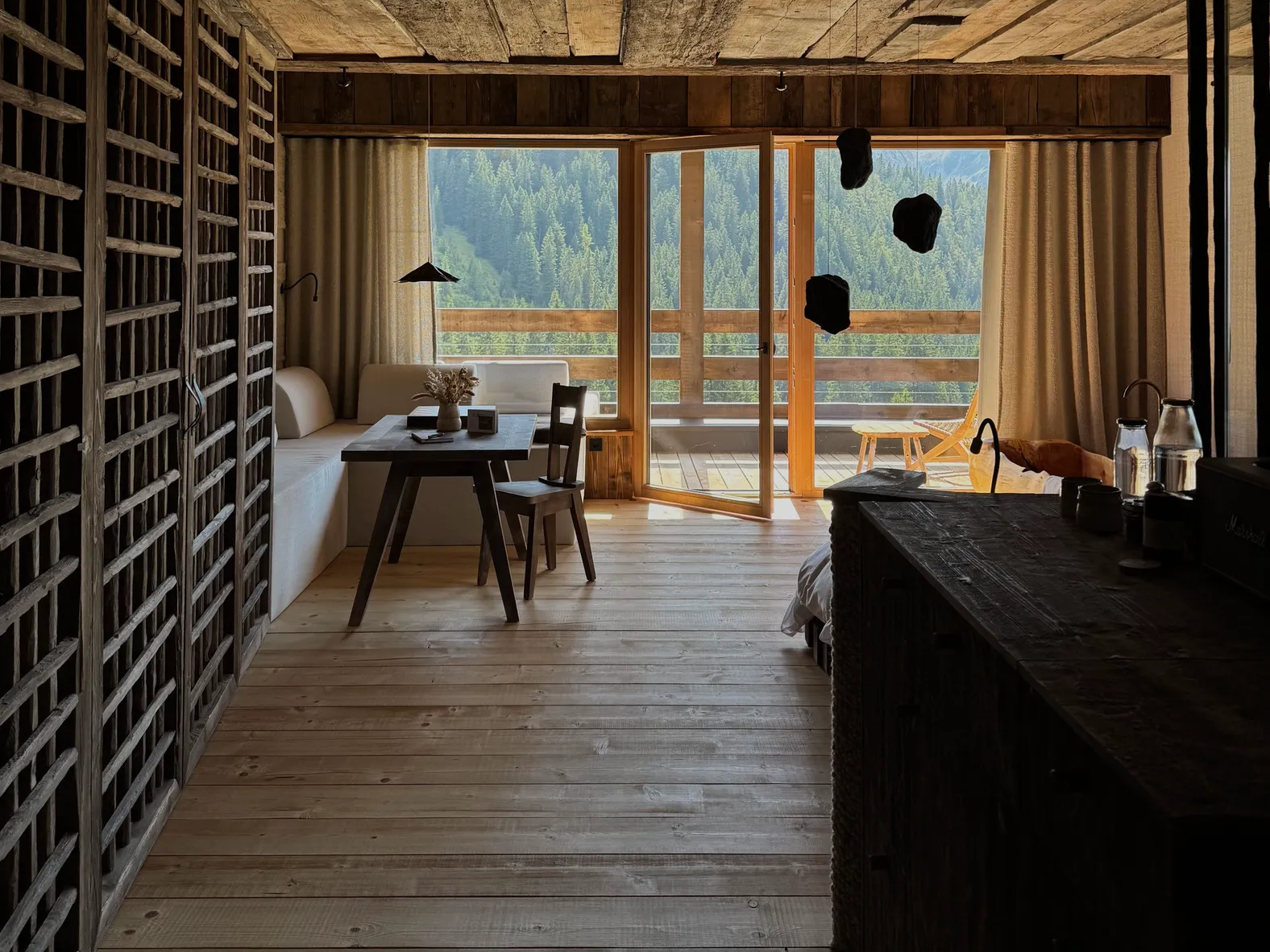 At Eriro Alpine Hide, the welcome is wool socks, not passwords: a high-altitude reset where no Wi-Fi and strong materials – larch, spruce, sheep’s wool – gently push travelers back into their own senses