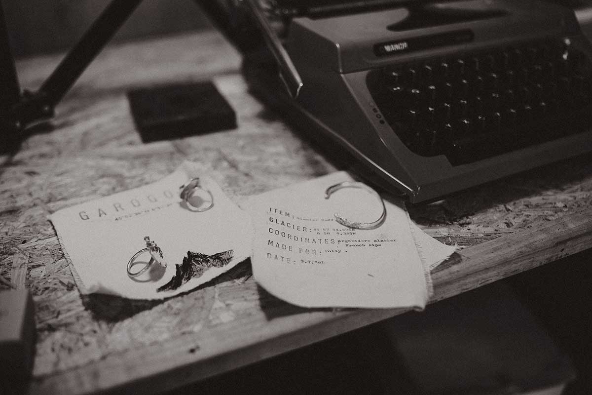 The pieces become a means of documentation of the natural landscape, an environment which in the course of a man’s lifetime will already have a different form. Nigogosian is an advocate of involving the wearer within the creative process when possible, «Once I took the work out of the gallery I didn’t want to lose that connection with others so I started inviting people to a molding session. I would take couples up onto the Glacier to choose where they wanted their rings to come from. Typically you just go to the jewelry shop and pick out a ring that’s been made a thousand times, whereas my work is symbolic of the unique bond between a couple».