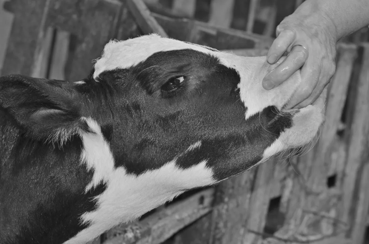 I visited both small domestic farms with about ten animals and large industrial ones. I was searching for the sensation I had felt behind the cage, and I found it. I followed my intuition. I felt I had to film a cow giving birth, rows of milking machines, artificial insemination, the slaughter of a rabbit, the slaughter of a broiler chicken. I felt fear, awe, and horror. I felt deeply uneasy, but I knew I had to go further into that state, to confront the sense of exploitation and “legitimate violence” that had been inflicted on me.