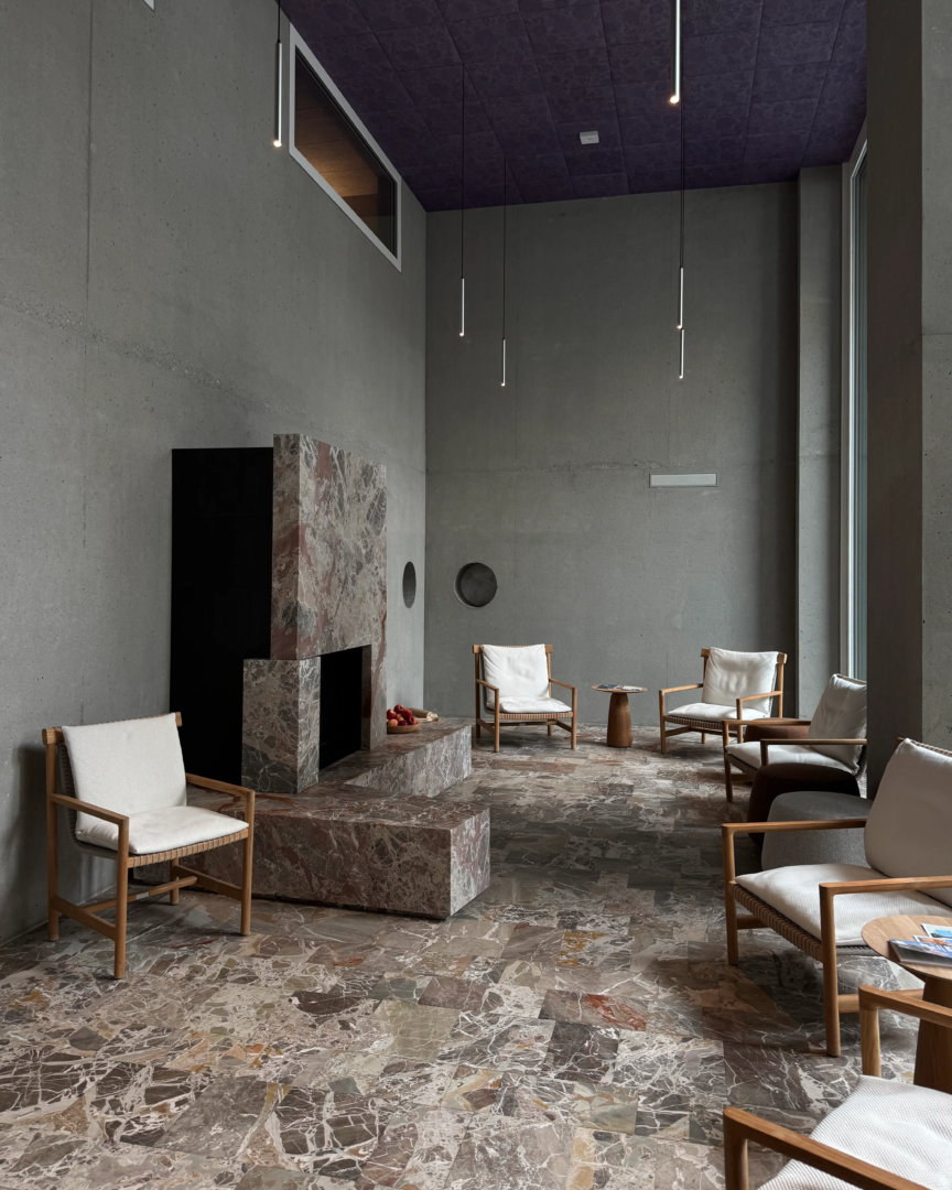 The hotel’s material palette is unusually coherent. Caminada builds from a triad of stone, concrete and wood, but the specifics are what give the project its voice.