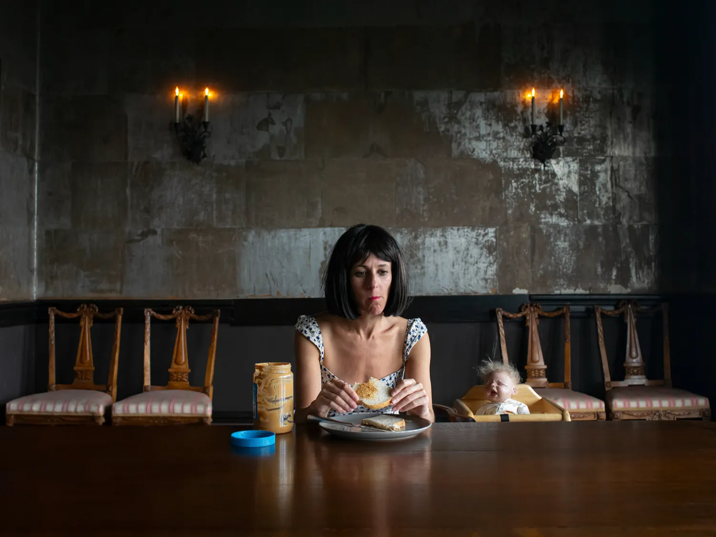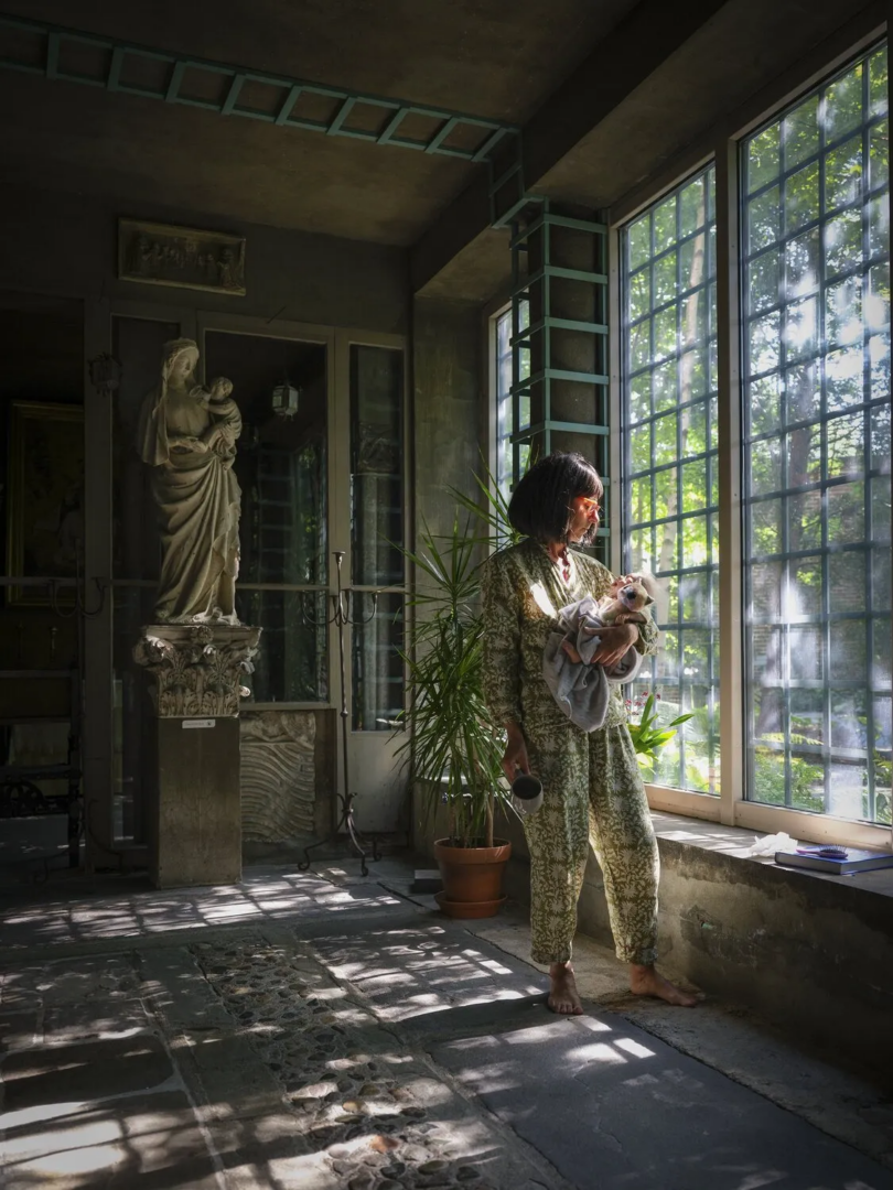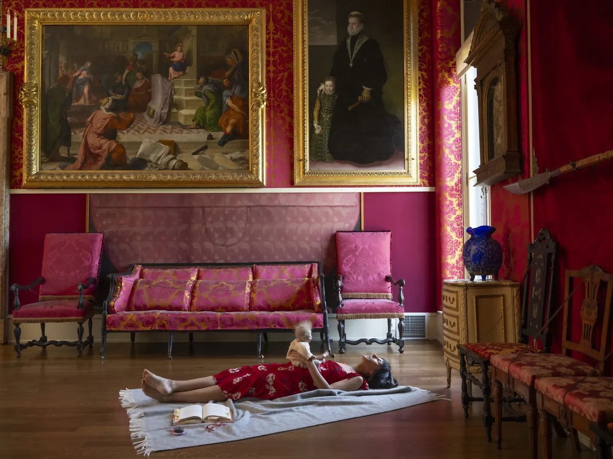 The staging of these scenes across domestic interiors and open landscapes intensifies their internal tension. Images that initially present a sense of harmony gradually reveal a more fragile coherence, exposing the mechanisms that sustain their legibility. The maternal figure unfolds as a fluid construct, continuously negotiated between lived experience and its representation.