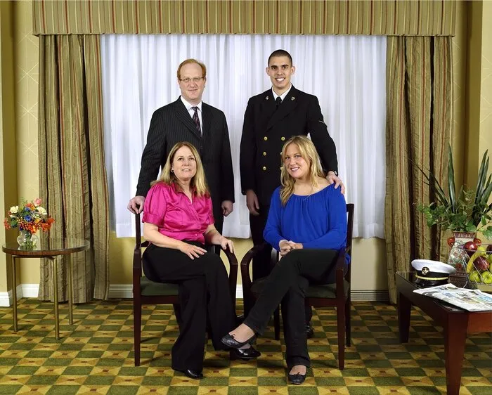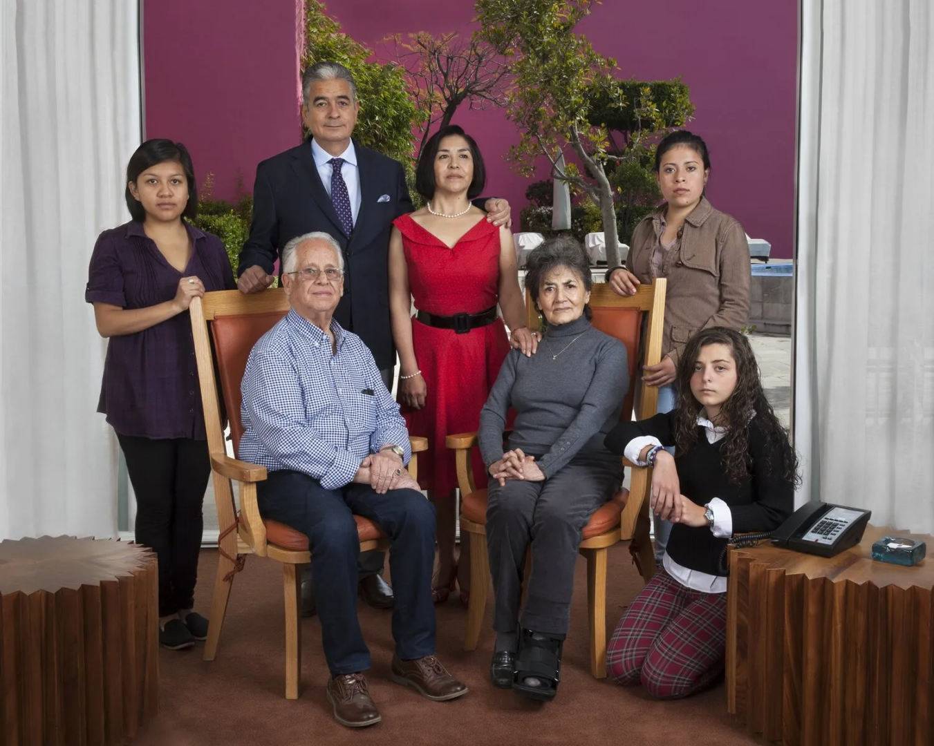 The forced liaison between complete strangers generates a glitch, a visible state of quiet tension. They appear convincing, even familiar, while carrying within them a subtle dissonance that resists resolution. Recognition and doubt emerge simultaneously, destabilizing the viewer’s reliance on the photograph as evidence. “I’m interested in both the performance of the portrait and our innate fluency in its codes and gestures, as well as the shifting paradigm of the traditional family structure. The work explores the public image of family, themes of photographic truth, gender, class, culture and identity. As indicated by the titles of each work, each family is given the name of the hotel where the photograph was taken.” An additional element that disrupts the sense of familial warmth and intimacy, displacing identity into the anonymity of a setting.