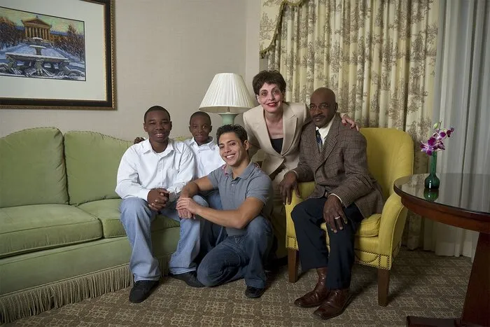 Her Constructed Family Portraits series offers one of the articulations of this position. Beginning in 2006, Diamond invited strangers through Craigslist to participate in fictional family scenarios, asking ordinary individuals to inhabit roles – mother, father, child – within orchestrated compositions. These images draw upon a deeply embedded visual grammar: the proximities between bodies, the choreography of touch, the calibrated and quiet expressions of belonging, they all compose recognizable codes of what a Family photograph should look like, result of decades of repetition. “The family portrait depicts a mythology or stereotypical ideal of a happy life, yet family is an ongoing performance where roles are assigned, with a constant expectation of an audience, both private and public.”
