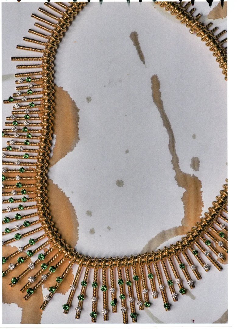 Among the featured pieces, the Jean Schlumberger by Tiffany & Co. gold and platinum fringe necklace with tsavorites and diamonds stands out as a tribute to one of the house’s most legendary designers.