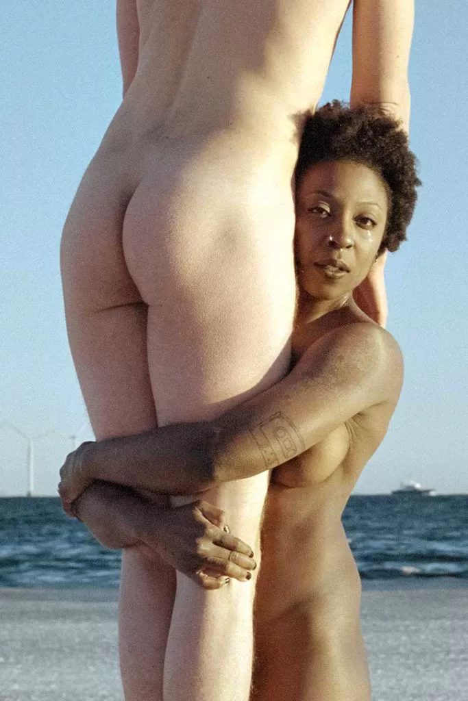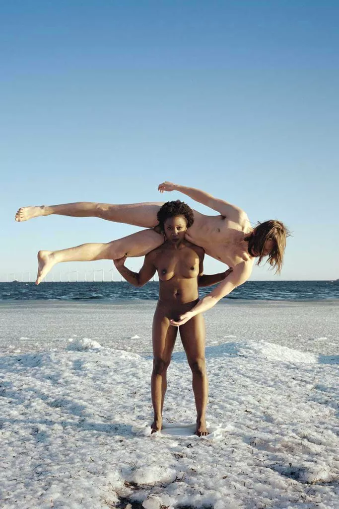 When creating an image, AdeY asks his subjects to imagine themselves as children, a time when we were afforded the freedom to run around naked. In his photography, nudity is pure and can equate to collective joy. We appreciate what the body can do, opposed to what the body looks like. Without clothing or the weight of sexuality, there is no fuel for the male gaze and there is nothing to be sold or consumed. De-sexualized nudes do not feature close-up shots of breasts, or the tiny waists and perky bums of Instagram but engage with the functionality of the body. AdeY celebrates the body’s ability to bend, contort, run, jump, feel the wind on the back of our neck, hold us up, hold other bodies up and connect.