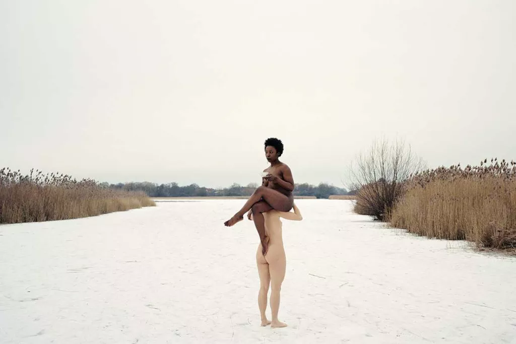 In his recent series, ‘Body Games’, AdeY investigates the extremities of the body, inspired in part by his practice of winter bathing over lockdown. The images reveal the pain or conditions our bodies can withstand, intensified by bare skin against ice. «This world pains a lot of people, whether it’s through racism, the sexualization of certain genders or prejudice of any kind» believes AdeY. His work often explores isolation and his «bleak outlook on the world at times». Setting moments of intimacy against harsh landscapes, of grey skies or abandoned factories, «it’s a picture of that feeling inside when you’re in a world surrounded by people but can still feel so alone». In these moments, nudity only further exposes these feelings as nakedness and touch do not always ensure affection or closeness. In some ways, it is a reminder that there is more to human connection and relationships than sex or outward appearances.