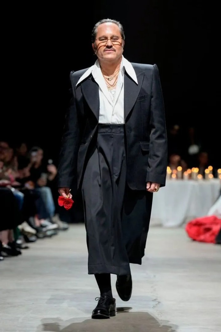 During Milan Fashion Week Fall/Winter 26–27, Jorge Luis Salinas presented Virreinato, a collection rooted in Peru’s artisanal tradition. Through signature Andean weaves, Peruvian cotton, and alpaca fiber, Salinas offered a contemporary reinterpretation of his country’s textile heritage, collaborating with Huanuqueña artisan Vilma Aldaba Jorge, who crafted several pieces using crochet and knitting techniques.