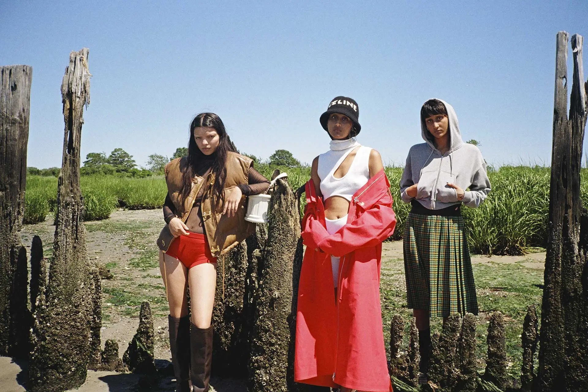 Nat and twins Sirat and Mannat blending in with untamed nature, sun-bleached sand and the never ending blue skies of Rockaway Beach, New York. I wanted to feel the sand with bare feet and dig in with fingers, feel the prickling grass, feel the wind on the bare skin, sink the heels in the wet sand and seaweed, blend into the sound of roaring waves. I focused on portraits, as well as details of body parts and fashion, to embrace and emphasize the bond between Nat, Sirat and Mannat. It’s about them. It’s about their energy, love and connection.