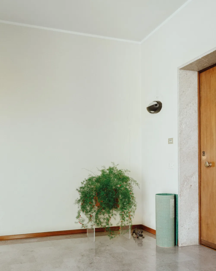 L’architettura di Treviso e la sua atmosfera giocano un ruolo fondamentale nello stile visivo di Brilla Sempre. «Treviso è una città molto pulita e ordinata, e questo si riflette nel pensiero di una certa area geografica del Nord-Est. Forse questa pulizia esteriore può aver influenzato in qualche modo il mio occhio, anche se poi ho vissuto a Roma, in Sicilia, oggi a Venezia, luoghi infinitamente più caotici ma anche stimolanti. Treviso, nella sua compostezza, è una città che a volte trovo noiosa. I palazzi che ho fotografato sono architetture anni ’70 senza particolari spicchi creativi, ordinarie. Anche la decorazione — gli zerbini, le piante — ha un gusto che a volte definirei banale, dove non c’è niente in disordine. A Roma, che adoro, trovi piante esagerate o cose fuori posto; a Treviso tutto sembra essere esattamente dove dovrebbe stare».