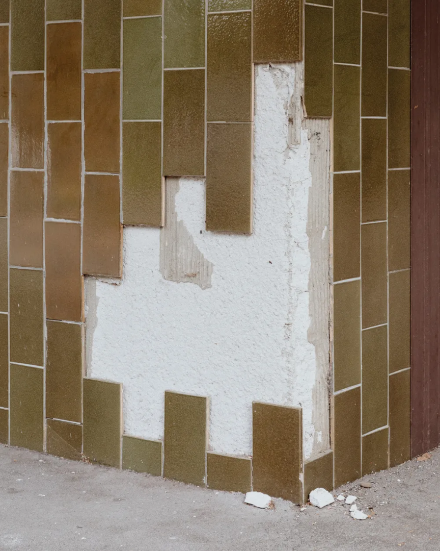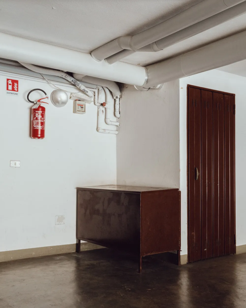 In questo ordine apparente, l’obiettivo si sofferma su dettagli che richiamano la gestualità della madre. Lo sguardo del fotografo sembra indugiare e posarsi negli angoli, verso terra, sui pavimenti e sulle superfici meno vistose. «Visitando questi luoghi ricordavo le indicazioni che lei mi dava quando la aiutavo: i posti che si riempivano di foglie secche che andavano rimosse o i pavimenti dove passava solo il mocio. In una delle immagini del libro, quel riferimento al muro sgretolato con la polvere di calcestruzzo a terra è una cosa che lei avrebbe notato subito, con il suo modo di guardare allo sporco come a qualcosa da pulire e rimuovere».