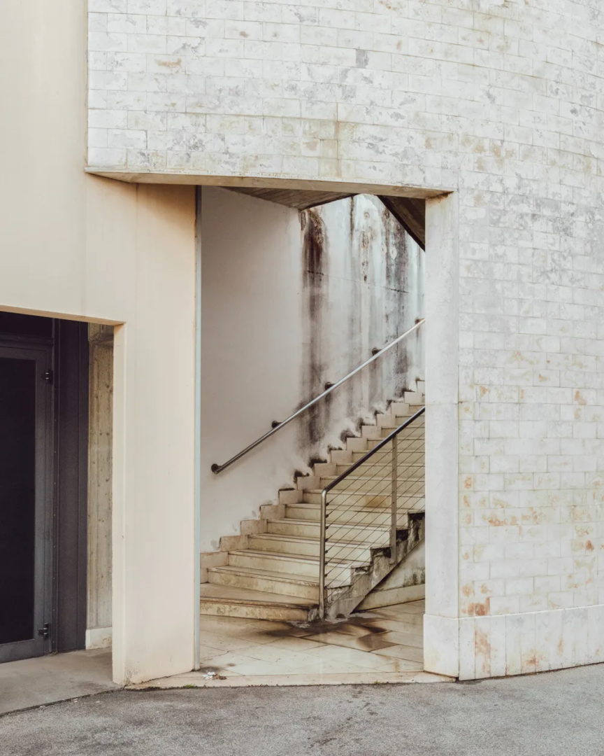 Condomini, scale, parcheggi quasi desolati, piccoli dettagli di piante e zerbini appoggiati sui pianerottoli. Architetture nitide e pulite. L’occhio di Matteo de Mayda si è posato su spazi che la memoria aveva parzialmente rimosso o distorto. «Mi ha colpito il fatto che non ricordassi i luoghi dove lavorava mia madre in modo preciso, ma durante quelle incursioni alcune immagini tornavano alla memoria. Queste sensazioni hanno alimentato i ricordi. In quegli edifici, risalendo le scale che lei puliva, provavo a intuire i pensieri di mia madre o le sue preoccupazioni di donna giovane — mi ha avuto a 23 anni — che manteneva un figlio da sola, pagava il mutuo di una piccola casa, pur con un lavoro così umile».