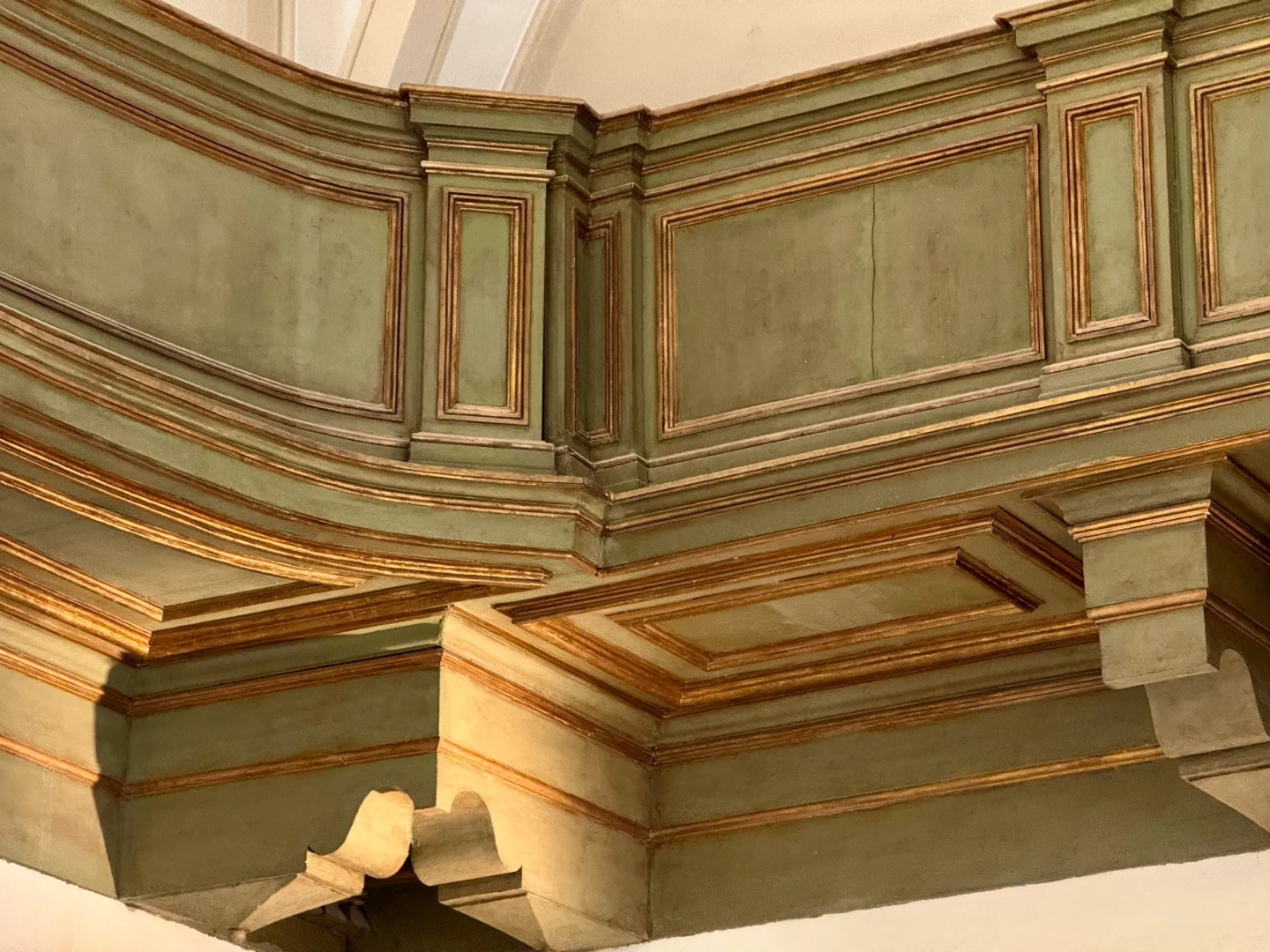 Two junior suites are connected with the Aula Magna – a dramatic room featuring Serenari’s ceiling paintings eleven meters overhead, historical marbles, and wooden choir stalls. Together these spaces span 358 square meters, accommodating eight guests or hosting remarkable private gatherings.