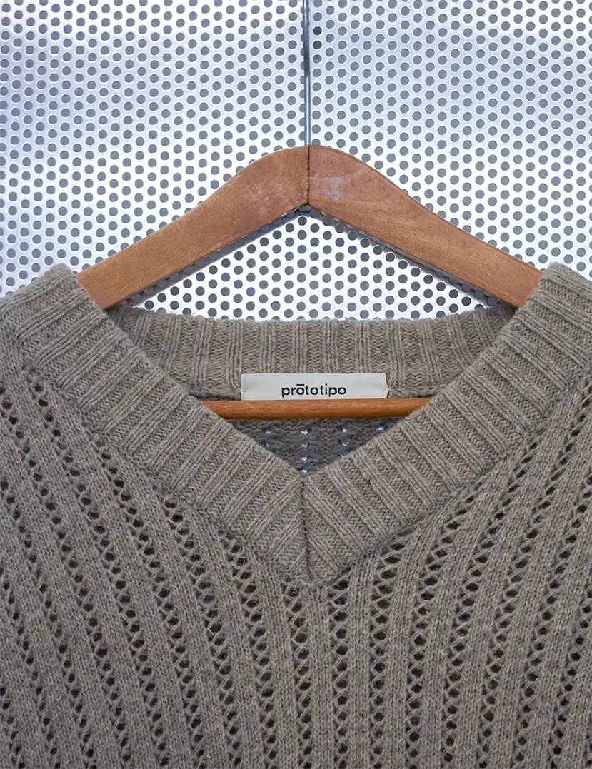 Hemp and Wool Pullover – V-neck, drop stitch. A Blend of Natural Textures, Tuscan hemp and Apulian wool.