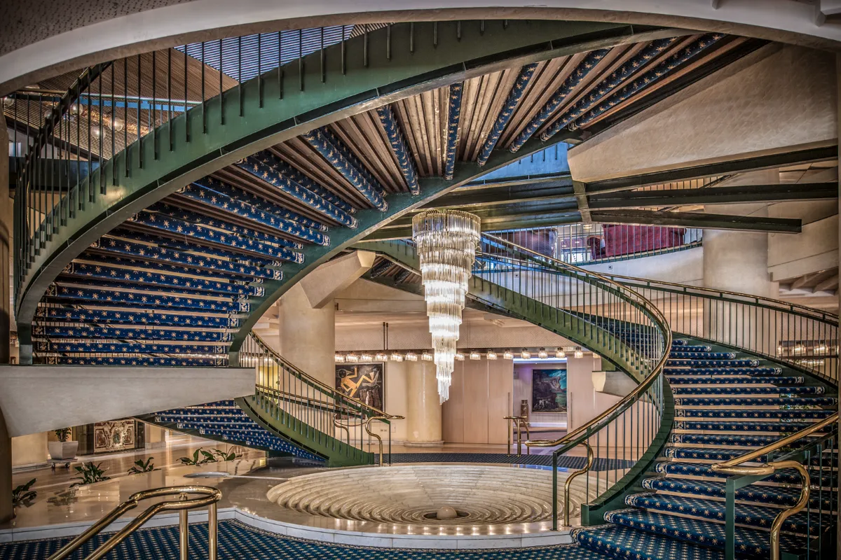 Tra queste spicca l’episodio Eritrea di Luigi Comencini, parte del film a episodi La mia signora del 1964. Il racconto si conclude sulla celebre scala ellittica a doppia spirale che si sviluppa al centro della hall, da cui scende regale Silvana Mangano, avvolta in un abito da sera bianco scintillante di strass: un’immagine rimasta iconica.