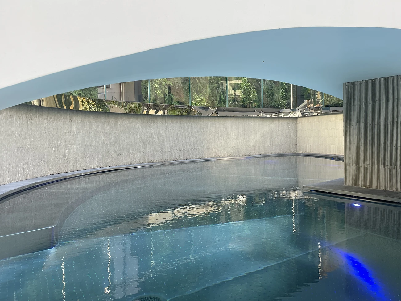 Rather than conceal the ruins, the architects integrated them. A transparent-bottomed swimming pool now floats above the preserved remains, visible from the spa and courtyard. The gesture is emblematic of the hotel’s approach to sustainable hotel design—adaptive reuse embedded in archaeological narrative.