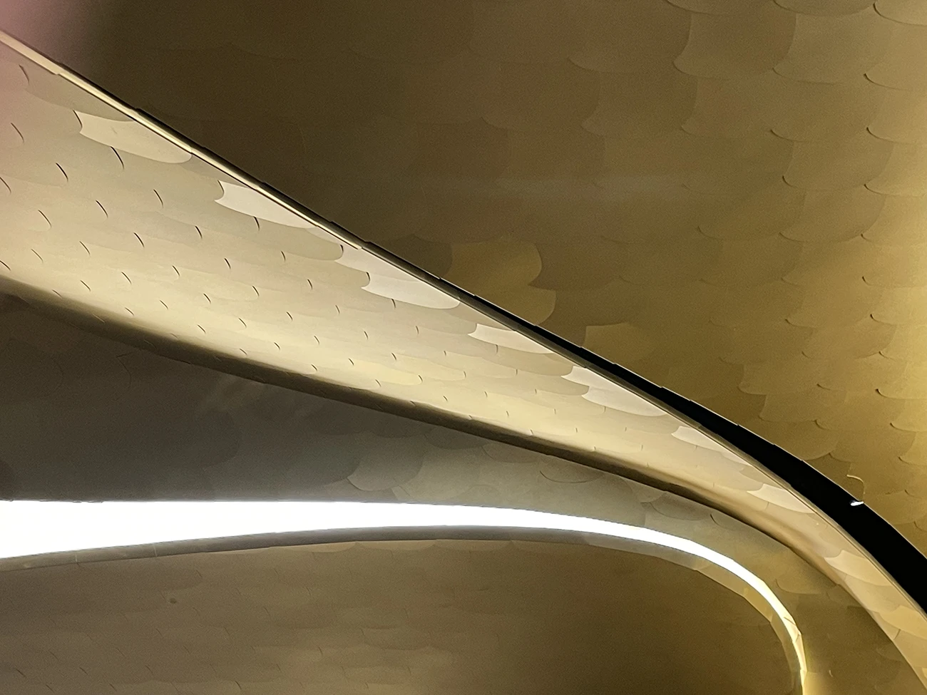 One of the less visible, yet essential components of Hadid’s design for Romeo Roma lies in her control of atmosphere. Lighting is treated not as a functional necessity, but as architectural matter. Indirect LED coves run along curvatures and recesses, highlighting the transitions between historic ceilings and new interventions. The use of light in tandem with dark materials—ebony, basalt, Nero Marquina—creates zones of contrast that guide perception as much as they define space.