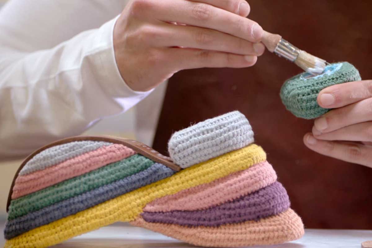 According to the Manifesto published on Ferragamo’s website, Sustainable Thinking is at the heart of who they are, and their renewable energy is represented by the brand’s heritage that has been used as inspiration for a limited-edition capsule collection launched with the platform. The cork, a natural and renewable material, which Salvatore Ferragamo himself used for the first time back in 1930, when he created a wedged sandal in which the platform was made by cork, today is used in the reinterpretation of the Top Handle bag. The Earth Top Handle Bag, created for 2021 Earth Day, is made of FSC certified cork, while the lining is in pure linen. «Cork is a product that grows on trees. The bark of the cork oak is taken off, they cut around the crust, and peel off one layer, and then it grows back. It’s an old way of farming, completely renewable and protective of biodiversity», explains James Ferragamo. «The cork goes through a process of refining – and from there, you can create anything: it’s a flexible material, but at the same time also durable. And this product is an example of artisan-craftsmanship because it’s woven by hand». The Rainbow Sandals, that Salvatore Ferragamo created for the actress Judy Garland in 1938, inspired the Rainbow Future Sandals, a limited edition of one hundred pieces crafted in organic crochet and supporting Treedom. Each pair of shoes comes with a certificate of an orange tree planted in the countryside near Catania, Sicily. The image of the rainbow, to which the brand is linked, is also the main feature of the 42 Degrees capsule collection. The capsule of two sneakers one model for male and the other for female and a shopping bag is the results of an in-house competition linked to the Sustainable Thinking Project in which all the designers from Salvatore Ferragamo’s team took part in. Sustainable not only in the material but also in the manufacturing and in the supply chain, it is a tribute to the rainbow as a natural phenomenon. Lastly, the Viva Ballet Flat are reinterpreted, mixing the brand iconicity with low environmental impact materials, in the Responsible Viva, made of recycled cotton, polyester yarns, bio-based plastic and natural rubber. The responsible re-edition of the F – 80 Skeleton has the strap made of materials with low environmental impact such as the post-consumer recycled PET fiber fabric. A thin layer of FCS cork covers the inside, and the leather is vegetable tanned.