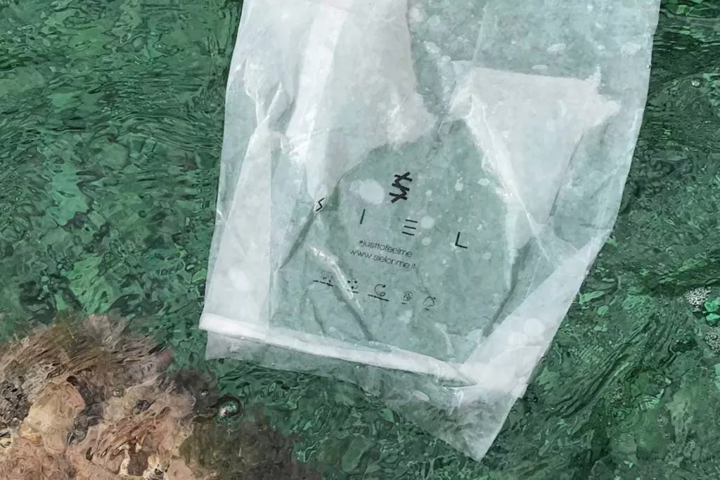 SIEL selected ‘Pura Natura’ sack and the Italian producer GIMA Packaging for the wrapping of items from their #TRUE capsule, as an exclusively Made in Italy product that adheres to the label’s ethical principles. The Oscar-awarded Pura Natura sack used by SIEL, is made of semi-transparent calendered pure cellulose and composed of low thickness paper entirely made up of virgin long fibers.