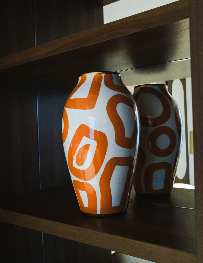 The relationship with the site’s theatrical history is expressed through measured references. Common areas include selected imagery and details drawn from Italian theaters and stage costumes. At ground level, a video installation by Felice Limosani presents sequences of performance, ranging from ballet to opera. These elements remain intentionally restrained, functioning as contextual references rather than immersive reconstructions. The former theater operates here as an archive integrated into everyday use.