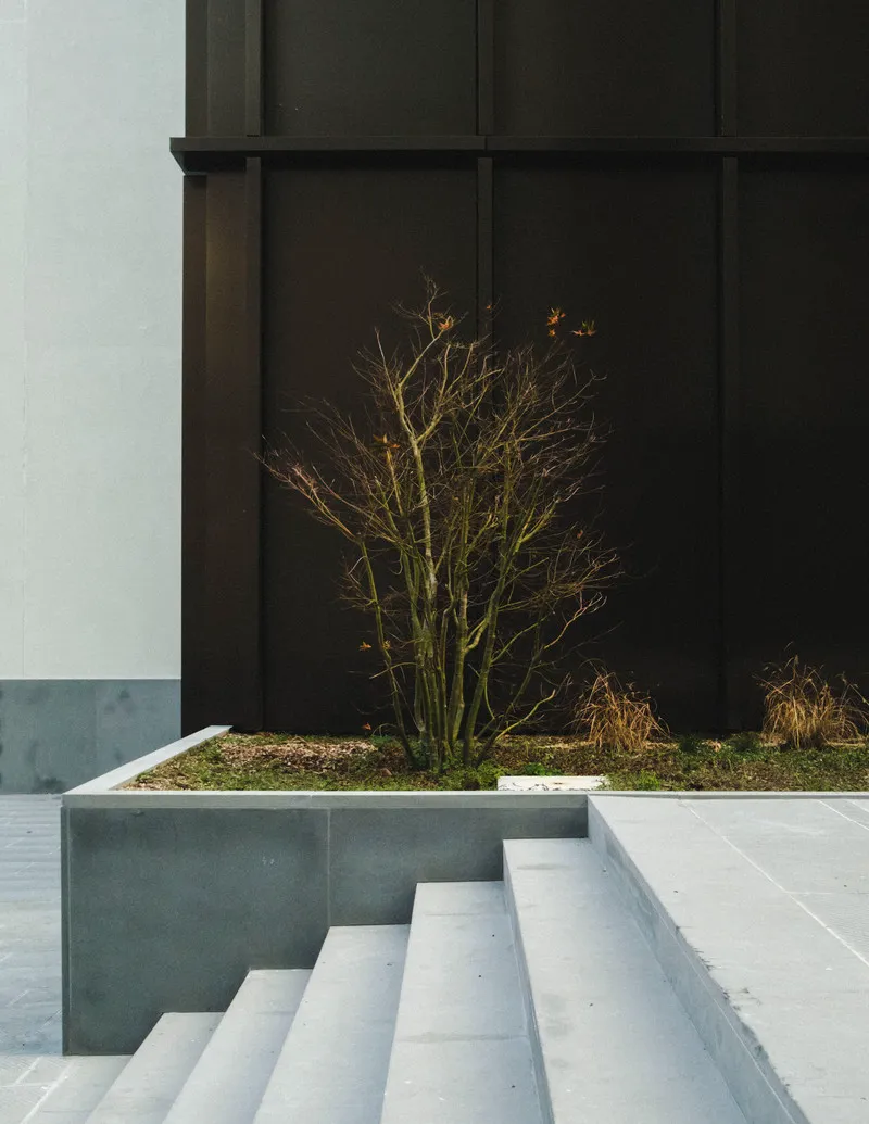 The development includes food and beverage spaces, a wellness area with fitness facilities, and an underground parking structure. These services are critical in determining whether the internal square functions as an active public space or remains a transitional area. The project is pursuing LEED Gold certification, with sustainability addressed primarily through energy consumption control and long-term operational efficiency. Maintenance and durability over time are central to the project’s environmental strategy.