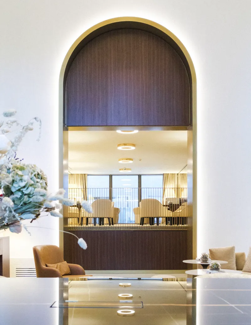 One hundred and fifty-six apartments represent an urban threshold. Rather than a conventional condominium, the project functions as a residential micro-neighborhood with its own daily rhythms. The apartment mix ranges from studios of approximately 40–45 square meters to larger units. Each layout is organized around autonomy: a private kitchen, a defined living area, and space suitable for working. The presence of shared amenities shifts the focus from short overnight stays to longer periods of residence.