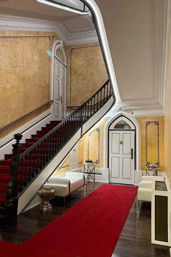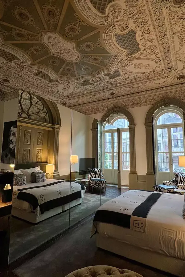 A Portuguese palace from 1861 has been brought back to life — its walls stripped of layers of paint to reveal timeless beauty. The stucco ceilings depict great Portuguese writers, who now lend their names to the hotel’s suites, blending history, literature, and luxury in the heart of Porto.