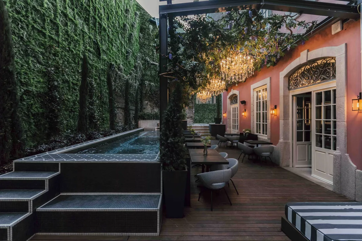 Located on the lower level of Torel Palace Porto, Blind Restaurant takes its name from Blindness by José Saramago. The restaurant opens onto a courtyard and a swimming pool surrounded by greenery, welcoming both hotel guests and locals.