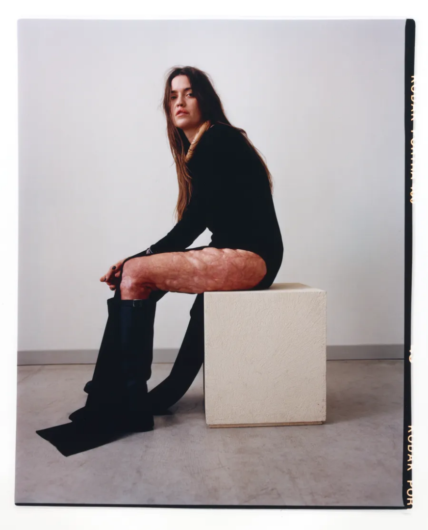 Plebani sembra permeata da una tensione bidirezionale. La voglia di passare oltre ciò che è stato, di smetterla di dire sempre le stesse cose, si scontra con il desiderio di utilizzare il suo privilegio – è una parola che usa spesso per descrivere la sua esperienza, insieme a «fortuna» – per far sì che altre persone possano sentirsi «accolte», vedendo un po’ di se stessi in lei. «La mia storia mi porta quindi a parlare ancora di corpo. Mi sono anche infilata in molti mondi, tra cui quello della moda, dove si gira ancora una volta sempre intorno ai canoni della bellezza». Il suo debutto in passerella è stato nel 2022 con Boss. Poi campagne, progetti, editoriali.