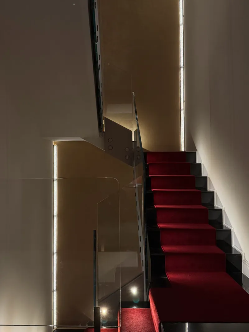 Inside, smaller spaces support different modes of use. A library allows quiet work and reading. A wine room enables tasting and learning in controlled settings. Personal shopping support directs guests through commercial routes without modifying their nature. The hotel does not replace city life; it accompanies it.