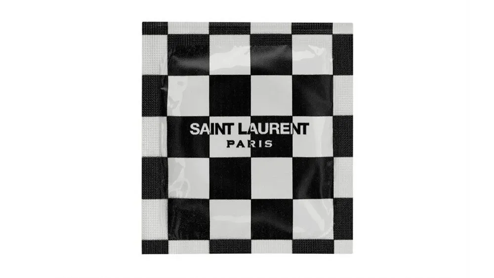 The Rive Droite concept store in Paris functions as a retail space for Saint Laurent. It distributes items outside of traditional apparel. Under the direction of Mr. Vaccarello, the house released condoms priced at approximately two euro each. The packaging incorporates patterns from the brand’s visual history. These include black-and-white checkered prints and animal motifs. Each unit bears the YSL logo. These objects remain available at the Rue Saint-Honoré location. Saint Laurent offers these branded items alongside matchsticks and lighters. Combined with the raw imagery by Mr. Teller, Saint Laurent encourages its consumers to “own their vices”
