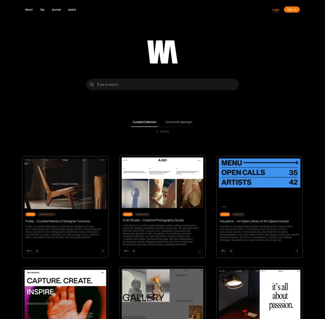 It is within this context that we[dot]art emerges: a platform that does not sell artworks, news, or services, but instead provides an essential infrastructure for digital presence and interconnection across creative fields. Defined as a “global collective of art and culture websites,” the project adapts the online ecosystem to its clear mission: equity of visibility.